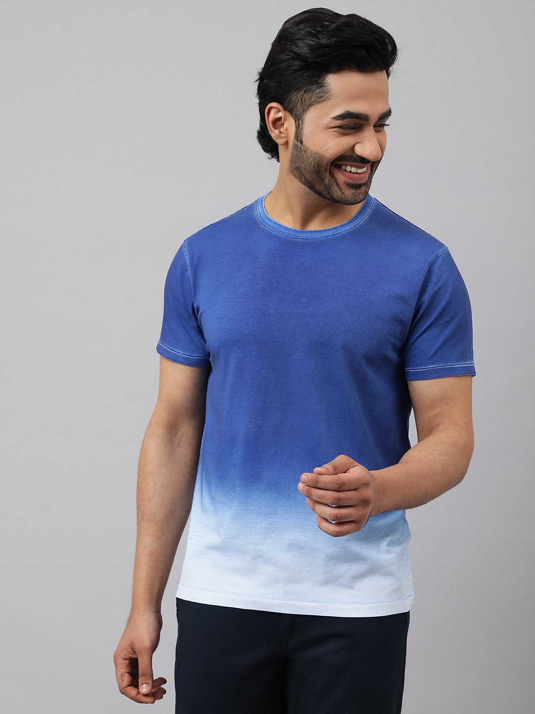 Round Neck Blue Gradient Tie & dye (Slim fit)