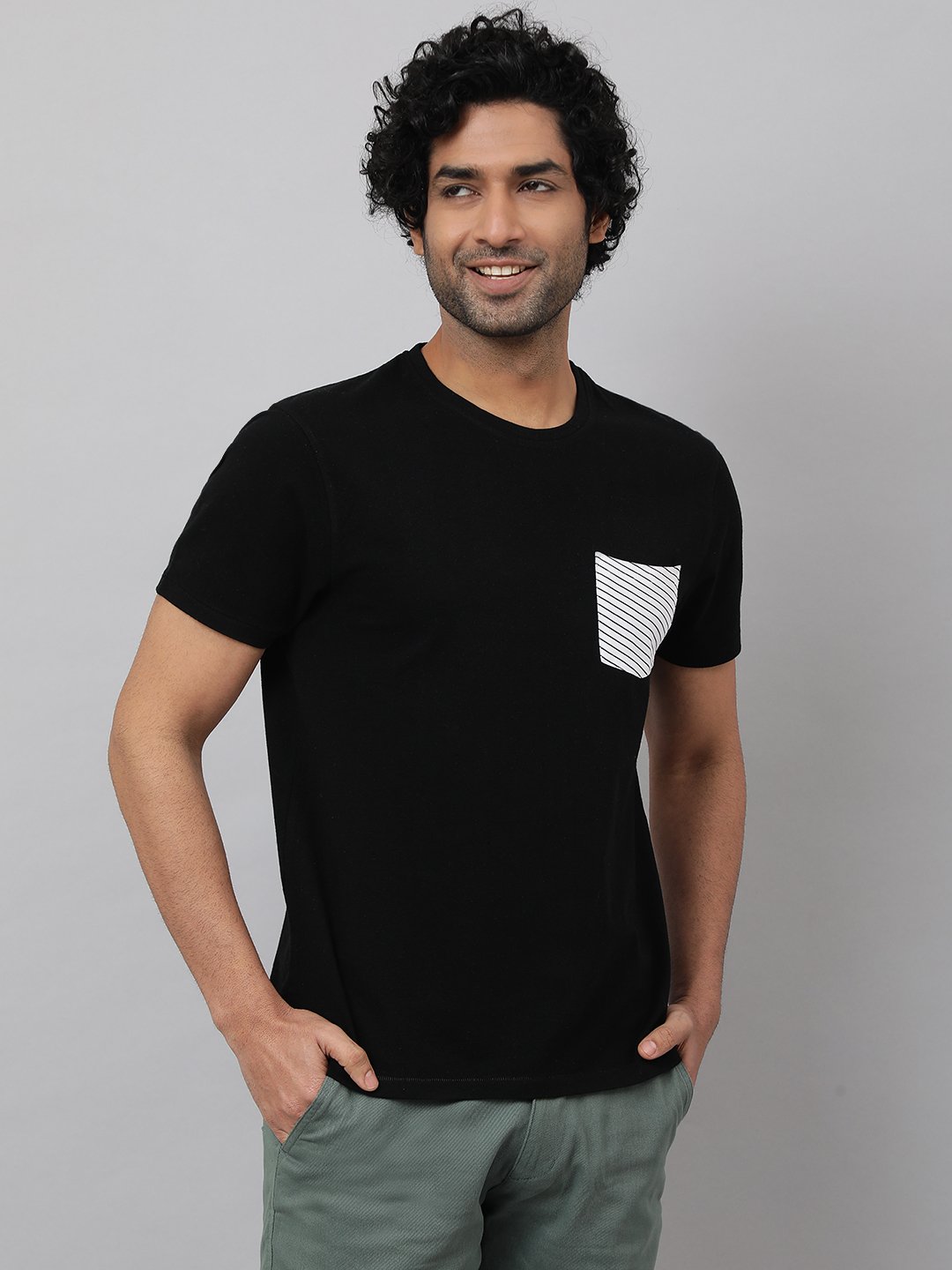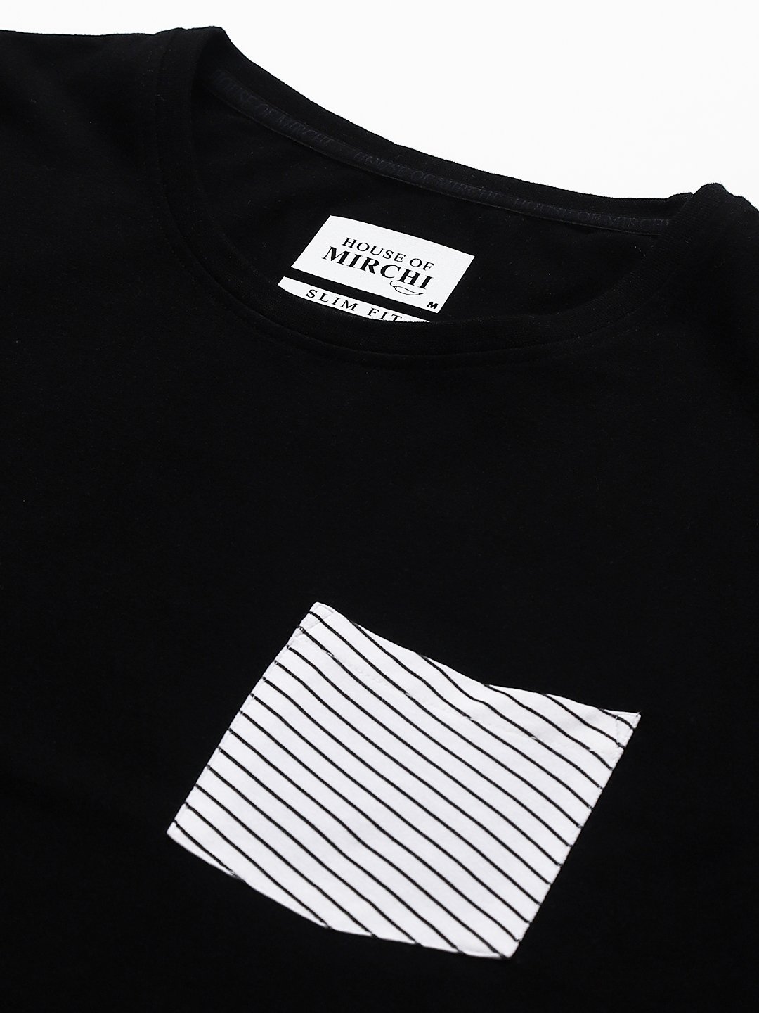 Be the first to review “Round neck with striped pocket – Black (Slim fit)”